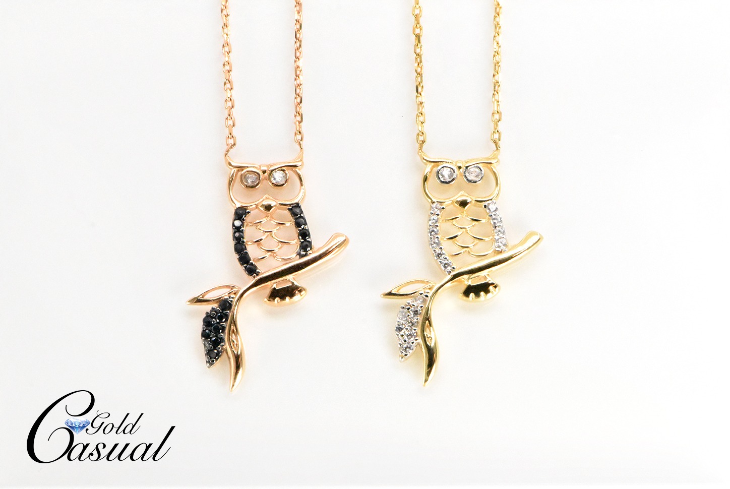 Rigtig fin halskæde i 18 karat guld med blank overflade og zirkoner. I billedet kan du se de 2 halskæde den ene med hvide zirkoner og den anden med roseguld og sort zirkoner.